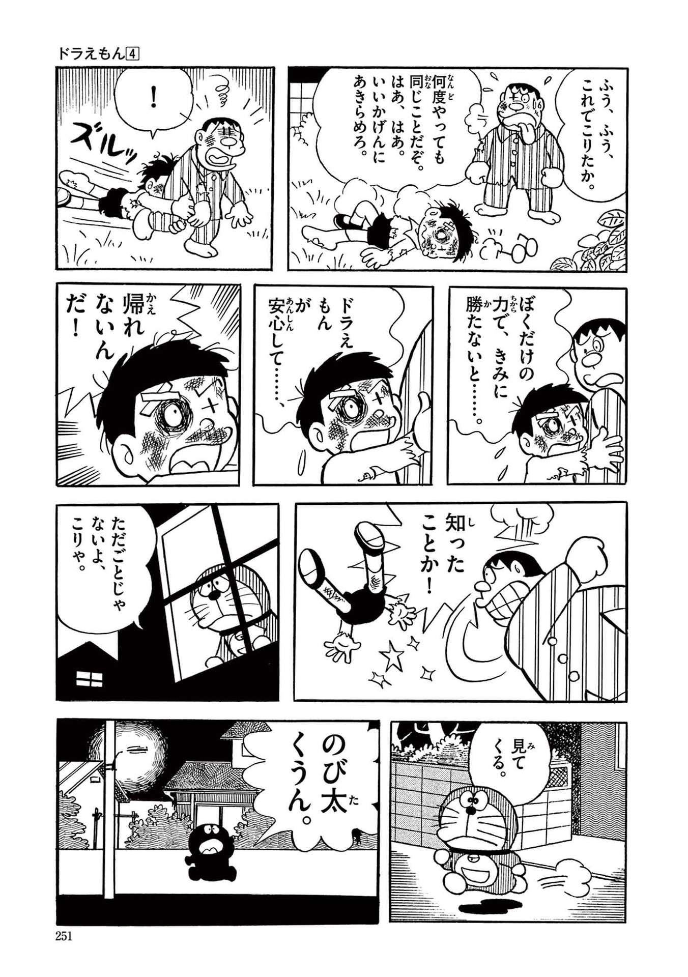 노비타는 자이언에게 쫓기며 도라에몽에게 싸움 도구를 부탁하지만, 도라에몽은 곧 미래로 돌아가야 한다며 거절한다. 송별회를 마친 뒤 도라에몽은 노비타가 홀로서기를 할 수 있을지 걱정하지만, 노비타는 결심을 굳히고 자이언과 맨손으로 싸워 끝내 이긴다. “나 혼자서도 할 수 있다”는 모습을 보여주자, 도라에몽은 안심하고 미래로 돌아가고, 방에는 그의 빈자리만 남는다.