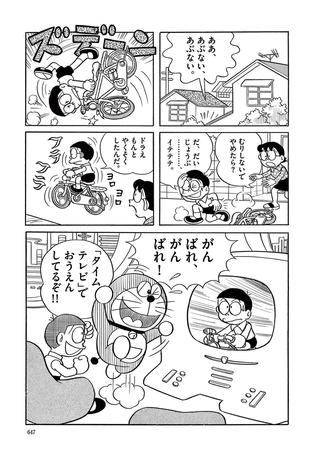 『小学四年生』 1972년 3월호에 게재된 에피소드로, 노비타는 자전거를 못 타서 도라에몽에게 도움을 청하지만, 도라에몽은 “스스로 해내야 한다”며 거절한다. 사실 도라에몽은 세와시의 부름을 받아 미래로 돌아가야 하는 상황이었고, 차마 솔직히 말하지 못해 “고장이 났다”는 거짓말을 한다. 노비타는 진실을 눈치채고, 눈물로 도라에몽의 이별을 받아들인다. 도라에몽은 서랍 속으로 사라지고, 책상 서랍은 평범한 서랍으로 돌아간다. 남겨진 노비타는 “이 서랍을 열 때마다 도라에몽을 떠올릴 것”이라 다짐하며 이야기는 끝난다.