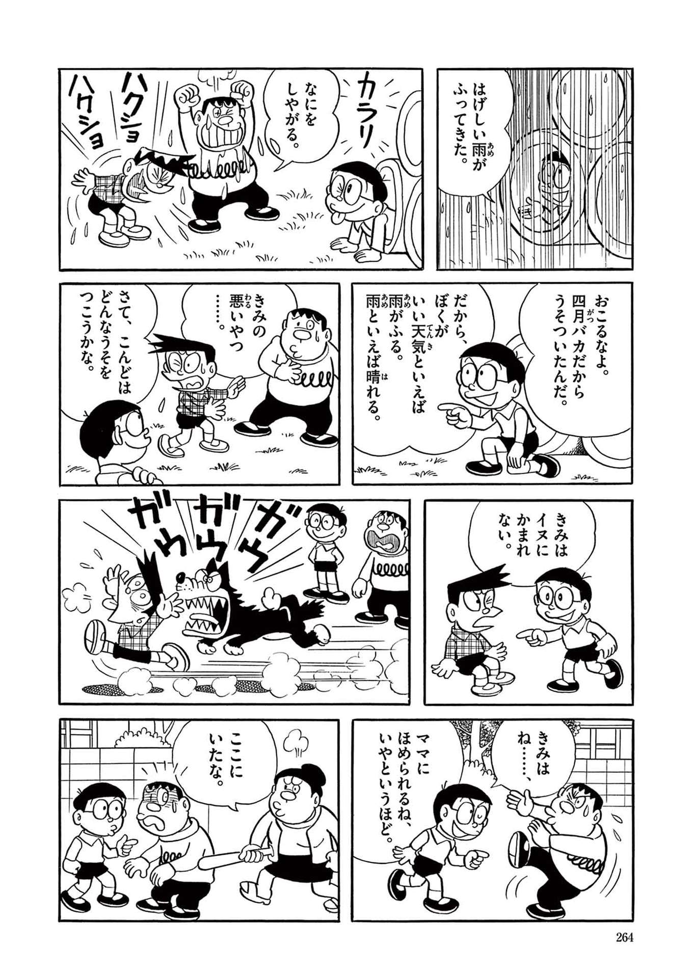 『小学四年生』 1974년 4월호에 게재되었던 에피소드로 단행본 7권 첫화로 수록되었다. 도라에몽과 이별 뒤, 노비타는 자이안(퉁퉁이)과 스네오(비실이)의 만우절 거짓말에 상처를 입고 도라에몽이 남긴 도구 ‘거짓말 800(ウソ800)’을 떠올린다. “말한 것이 모두 거짓이 된다”는 효능 때문에, 자이안과 스네오에게 복수한 뒤 “도라에몽은 돌아오지 않아”라는 노비타의 넋두리가 거짓말이 되어, 도라에몽이 미래에서 과거로 돌아오게 된다.