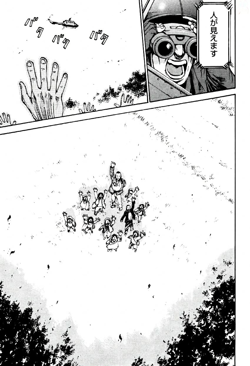 도쿄돔은 불길에 휩싸이는 혼란 속에서 시마모토는 도주를 꾀하지만, 그를 막아서면서 총상을 입은 마키와 함께 불타는 고층 밖으로 떨어진다. 사마모토와 마키는 추락 후 생사를 알수 없지만 죽었을 것이다. 한편, 아이들은 미우라와 함께 비밀 통로로 탈출했고 이후 헬기에 발견되어 도쿄를 빠져나간다. 하지만 쇼타도 쿄와 함께 빠져나왔지만 쿄는 이미 감염되어 있었기에 함께 떠나지 않고 남는다. 마지막 장면에서 쇼타는 강렬한 섬광을 보고 “아침 햇살”이라 말한다. 그러나 그것은 희망의 빛이 아니라, 도쿄돔과 수많은 감염자를 소거하기 위해 투하된 전술핵이 폭발할 때 나오던 초기 섬광 (Initial Flash)이었다.
