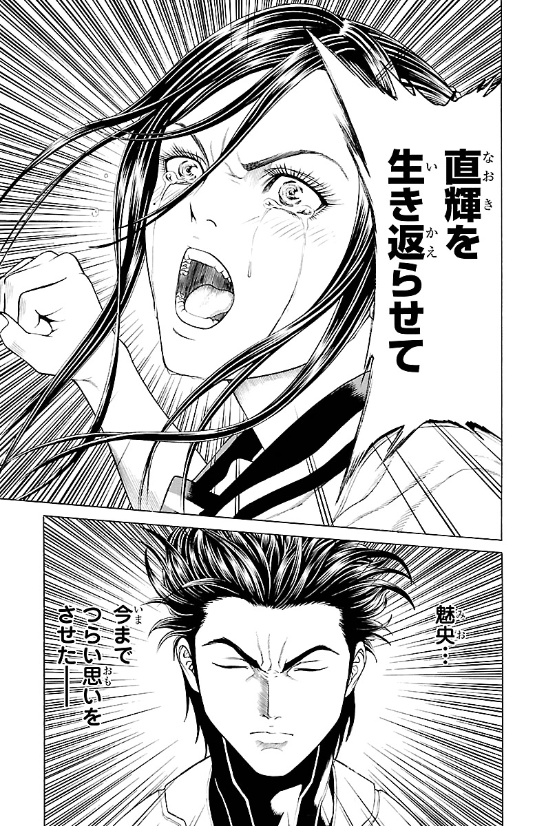 8일 뒤, 클론 장치를 되찾기 위해 아베노 하루쿠스로 향했으나, 이미 장치로 부활한 다케시게에게 일행은 전멸당한다. 기억을 잃고 “인간을 파괴한다”는 충동만 남은 다케시게에게 정예 에볼 부대와 미오까지도 패배한다. 전멸 위기 순간, 미오의 얼굴을 본 다케시게는 그녀를 시라사키 나오로 착각하고, 그녀와 자신만의 왕국을 세우기 위해 전 인류를 말살하겠다고 선언한다. 그때 살아남은 나루미가 ‘제왕’을 이끌고 나타나, 다시금 다케시게와 제왕을 하나로 합치려 하지만, 다케시게는 이를 거부한다.