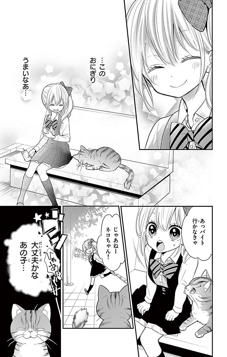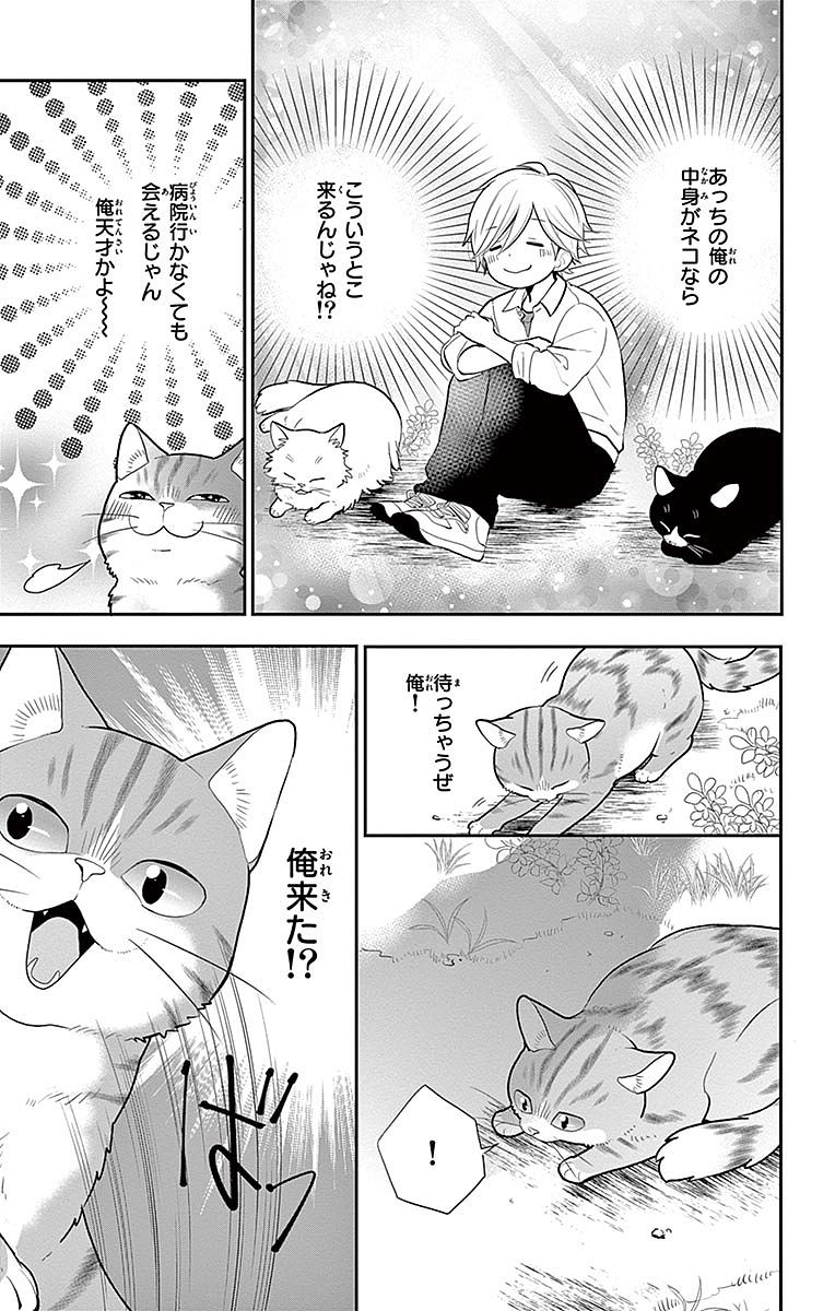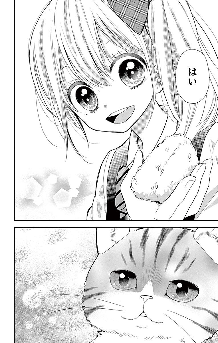 그런 일상 속에서 나오가 꾀병을 부렸을 때, 걱정한 치카가 동물병원으로 달려간 일을 계기로 나오의 이름은 ‘냐오’로 정해진다. 언제나 자신을 먼저 생각해 주는 치카에게 감사하는 나오(냐오)는, 덤벙대고 천연인 치카의 언행에 어이없어 하면서도 치카와 함께하는 생활에 행복을 느끼며 고양이 생활을 만끽한다. 치카와 지내는 동안 나오에게는, 반 친구나 동급생들의 학교생활에서는 보이지 않던 일면을 엿볼 기회가 늘어나기 시작한다. 이는 나오에게 사람으로서 크게 성장하는 계기가 되어 간다.