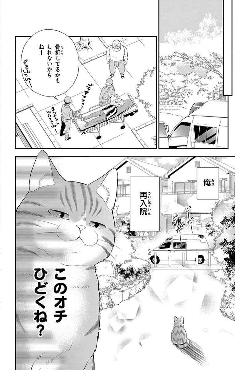 어떻게든 원래대로 돌아가 보려, 나오는 인간 모습의 자신에게 뛰어들지만, 절묘하게 피하고 만다. 고양이인 나오를 피하려다 그만 넘어져 버린 인간 모습의 나오는 골절 의심으로 재입원하게 된다. 인간인 자신과 소통도 못 한 채 원래로 돌아갈 기회가 멀어져 버린 나오는, 치카와의 생활을 한껏 즐기기로 한다.