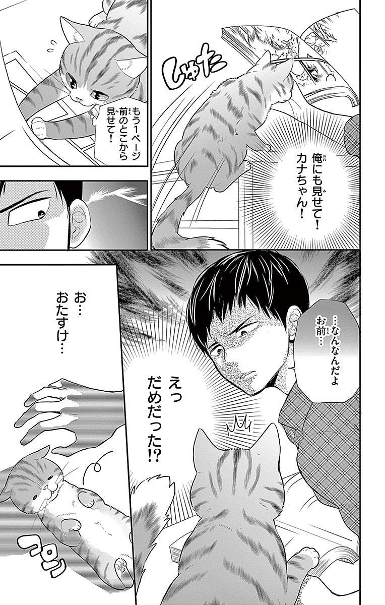 카나타는 눈매가 사납고 인상이 강한 남자고등학생이었기 때문이다. 하지만 카나타는 알아주는 고양이 애호가였다. 무사히 치카에게 돌아온 나오는, 난장판이던 치카의 방이 말끔하게 정리되어 있는 모습에 감동한다. 치카는 발톱 갈이와 고양이 화장실을 놓을 수 있도록 열심히 방 정리를 한 것이다.