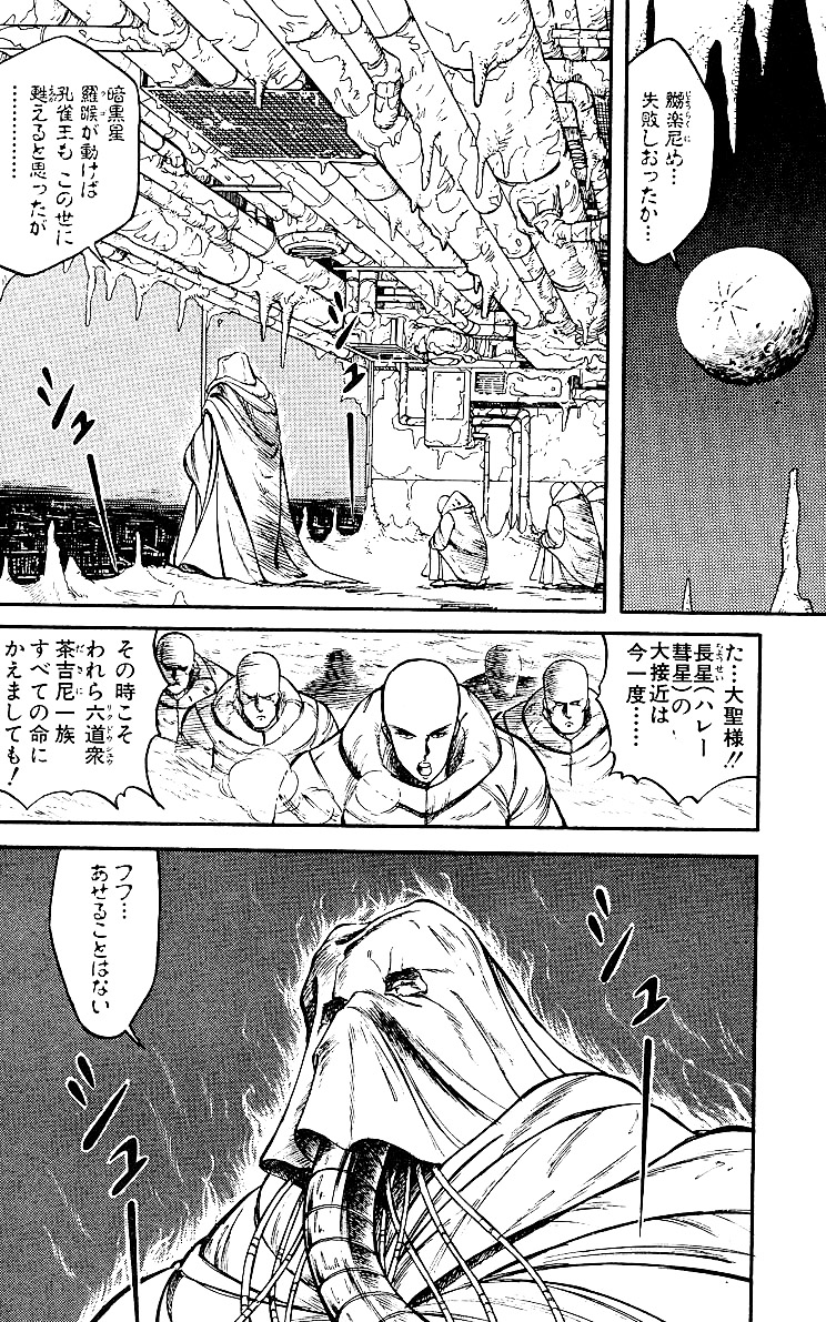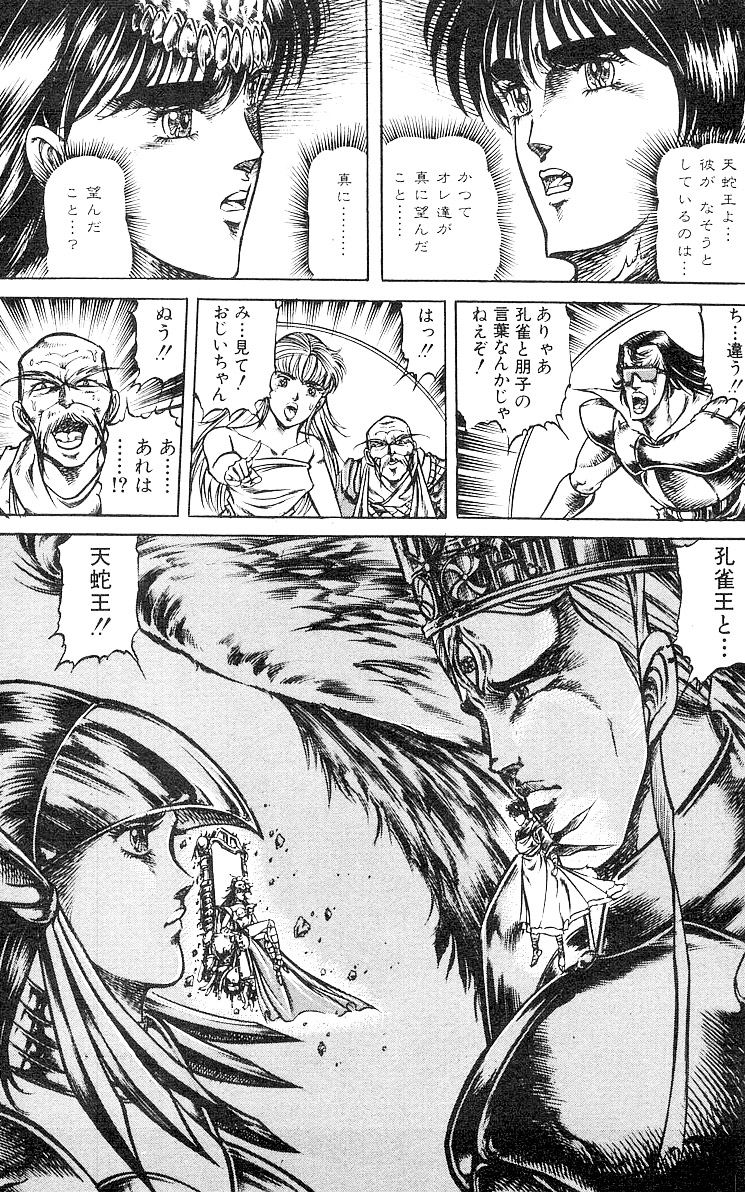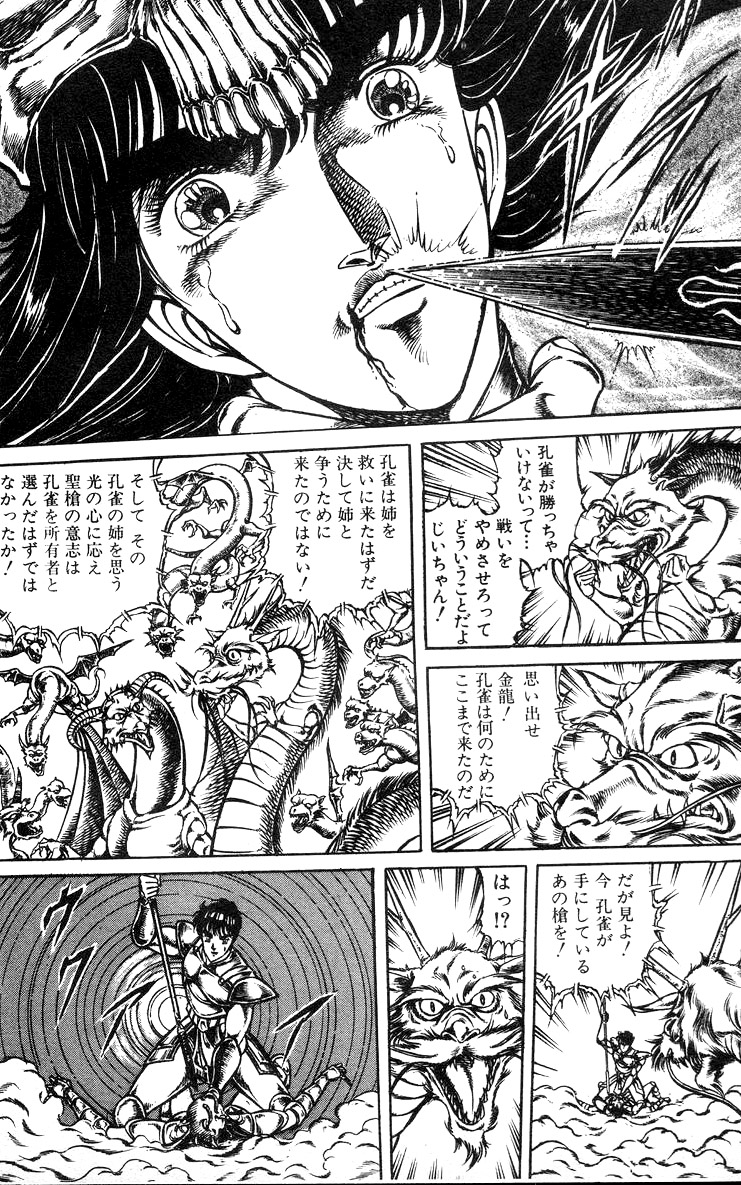 오칸이 후지산의 영혈에 있다는 사실을 알아낸 공작은 오니마루, 도사 황해봉과 함께 그곳으로 향해 오칸을 구해낸다. 공작 일행은 남매를 지키기 위해 그들을 곤륜으로 보내려 하지만, 군다리명왕에 의해 올가는 공작왕의 대칭으로서 ‘천사왕’으로 각성하여 공격해온다. 오칸은 공작을 지키려다 올가와 함께 장렬히 최후를 맞이하고, 분노한 공작은 군다리명왕을 쓰러뜨린다.