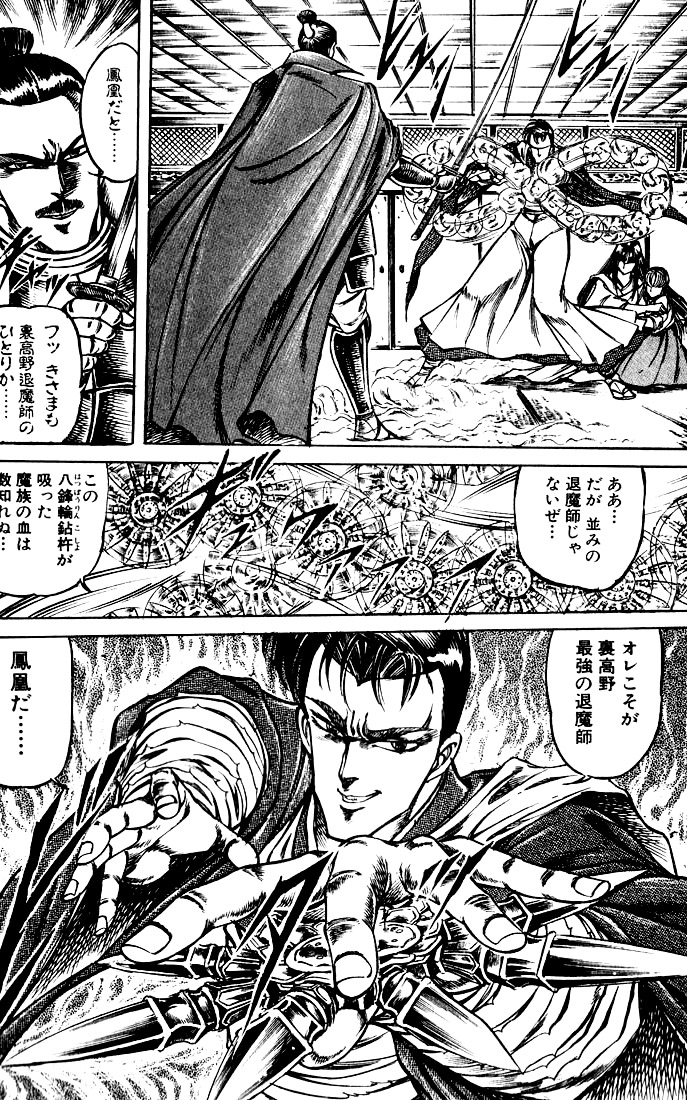 후반부에 등장하는 내고야(裏高野)의 퇴마사로, 가루라왕을 수호신으로 삼아 공중 비행술을 구사하는 강력한 인물이다. 그러나 본질은 마족에 몸과 마음을 바친 어둠의 존재로, 무기인 팔방륜고저를 사용한다. 공작과 대칭되는 캐릭터로, 사탄과 동화되어 환생한 그는 공작과 치열한 대립을 이어간다. 가혹한 성장 과정과 어두운 출신을 지닌 그는 끝내 최강의 힘을 탐하다 폭주하지만, 공작의 힘에 의해 어둠이 정화되며 해탈에 이르고 생을 마감한다.