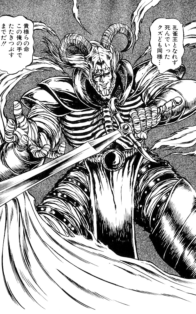 『공작왕』은 1980년대 일본 만화계에 한 번 보면 잊히지 않는 강렬한 충격을 던져준 작품이다옹. 퇴마승 땡중 공작이 손에 쥔 진언과 밀법은 단순한 주문이 아니라, 독자들의 뇌리에 꽂히는 공포의 의식처럼 느껴진다옹. 요괴가 눈앞에서 터져 나가고, 죽은 자가 부활하며, 불길한 별과 신들의 이름이 화면 가득 쏟아져 내릴 때, 이 만화는 그 자체로 당시 독자들에게 공포와 흥미의 대상이 되었을 것이다옹.