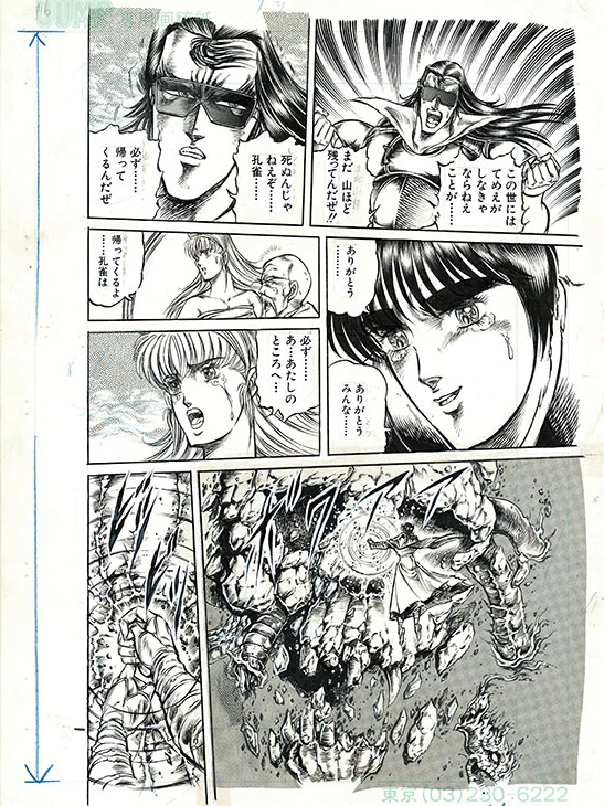 『공작왕』은 1980년대 세이넨 만화의 감성을 강하게 반영한 정통 만화적 필치가 특징입니다. 작가는 강렬하고 거친 선묘를 통해 캐릭터의 존재감을 강조하며, 요괴와 악령의 기괴한 모습을 묘사할 때는 그 섬뜩함이 오히려 시각적 공포로 작용한다. 밀교 의식을 표현할 때는 만다라, 진언, 밀교 도상 등 종교적 상징을 세밀하게 텍스처화하여, 단순한 액션 장면 속에서도 의식의 장엄함을 강하게 전달한다. 전체적으로 현실적이면서도 초현실적인 분위기를 동시에 구현한 작화 스타일이 돋보인다.