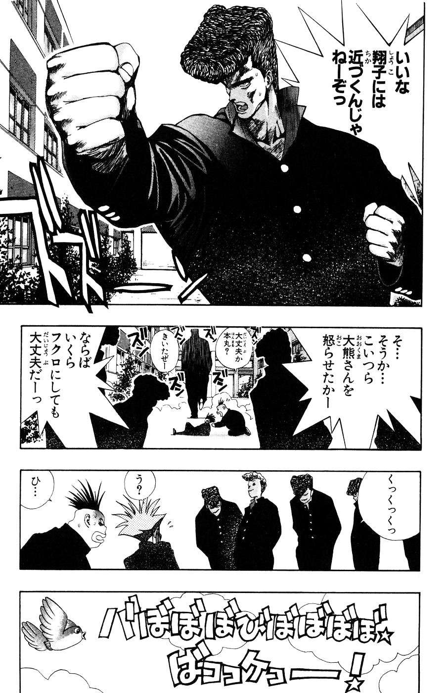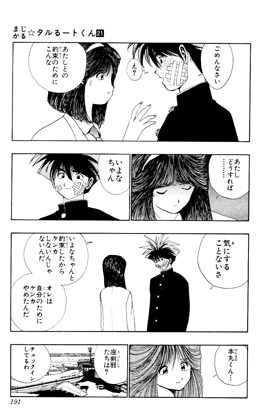 그리고 이쁜 3학년 여선배 쇼코와의 사이를 오해한 학교 보스 오쿠마에게 쟈바오와 함께 두들겨 맞는다. 쟈바오가 혼마루에게 권법을 이용해서 쓰러뜨리자고 하지만 더이상 무의미한 싸움레는 권법을 사용하지 않겠다고 말하며 어떻게든 견뎌내겠다고한다. 그러자 쟈바오가 타루루토를 불러내서 마법으로 해결하자고 제안한다.