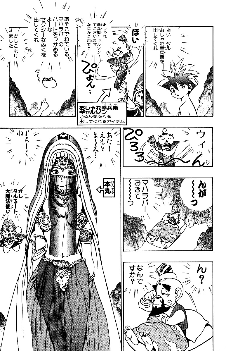 그 과정에서 타루루트와 혼마루는 마법 스탬프를 모으며 차근차근 나아간다. 그러던 중 여자를 엄청나게 밝히는 최강급의 마법사 중 한 명인 '마하라파(マハラパー)'를 만나게 된다. 어떠한 방법으로도 마하라파를 이길 수 없던 차 혼마루는 성전환 쥬스를 마시고 마루에로 변신하여 마하라프를 홀려서 스러트린후 스탬프를 받아낸다.
