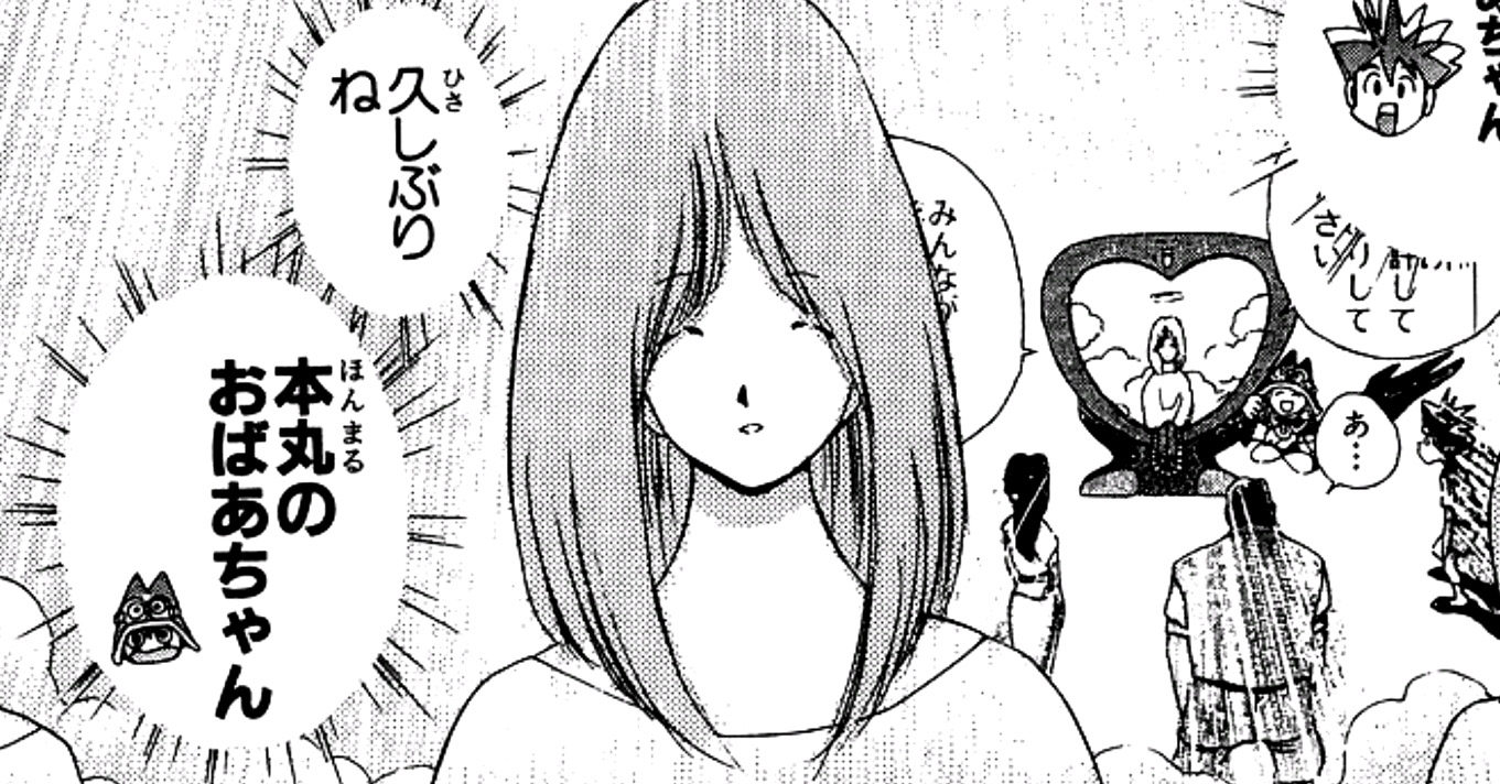 치즈루의 어머니이자 혼마루의 외조모. 심근경색으로 사망했으나, 타루루토의 마법 아이템 덕분에 영계에서 불려나와 가족과 재회한다. 손자 혼마루와도 대면하며, 우군지에게 사위를 용서하도록 권유했다. 또한 혼마루가 네이조와의 사투 끝에 목숨을 잃었을 때는 천상의 사자로서 그의 생명을 구하기 위해 움직인다. 영계에서는 나이를 먹지 않기 때문에 젊은 시절의 모습으로 등장한다.